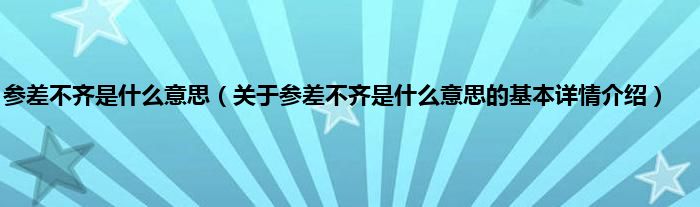 本文关于参差不齐是什么意思的基本详情介绍就讲解完毕,希望对大家有所帮助。