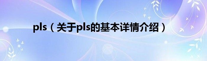 本文关于pls的基本详情介绍就讲解完毕,希望对大家有所帮助。