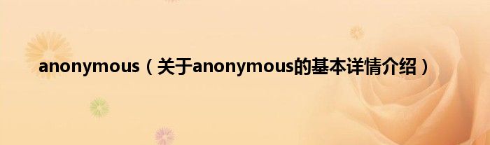本文关于anonymous的基本详情介绍就讲解完毕,希望对大家有所帮助。