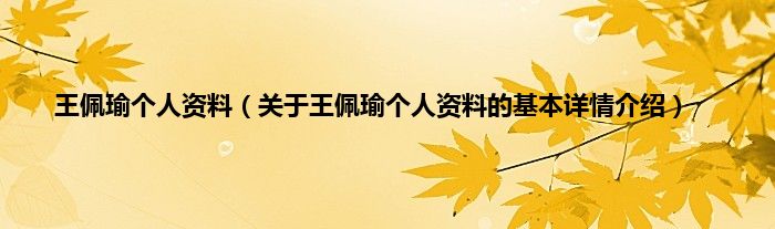 本文关于王佩瑜个人资料的基本详情介绍就讲解完毕,希望对大家有所帮助。