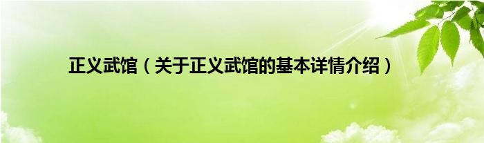 本文关于正义武馆的基本详情介绍就讲解完毕,希望对大家有所帮助。