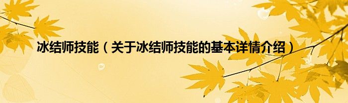 本文关于冰结师技能的基本详情介绍就讲解完毕,希望对大家有所帮助。