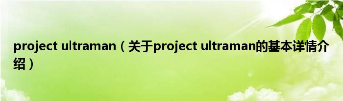 本文关于project ultraman的基本详情介绍就讲解完毕,希望对大家有所帮助。