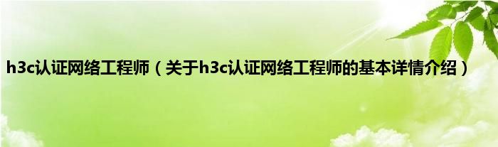 本文关于h3c认证网络工程师的基本详情介绍就讲解完毕,希望对大家有所帮助。