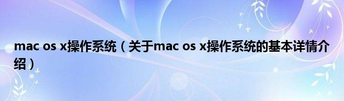 本文关于mac os x操作系统的基本详情介绍就讲解完毕,希望对大家有所帮助。