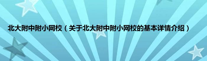 本文关于北大附中附小网校的基本详情介绍就讲解完毕,希望对大家有所帮助。