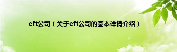 本文关于eft公司的基本详情介绍就讲解完毕,希望对大家有所帮助。