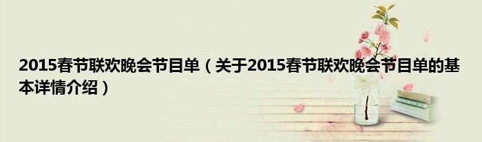 本文关于2015春节联欢晚会节目单的基本详情介绍就讲解完毕,希望对大家有所帮助。