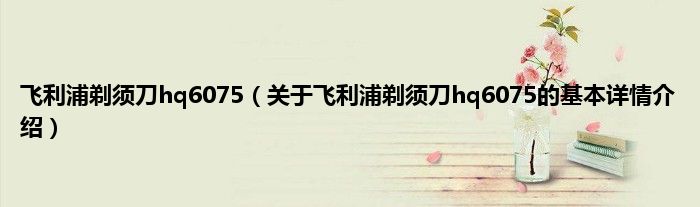 本文关于飞利浦剃须刀hq6075的基本详情介绍就讲解完毕,希望对大家有所帮助。