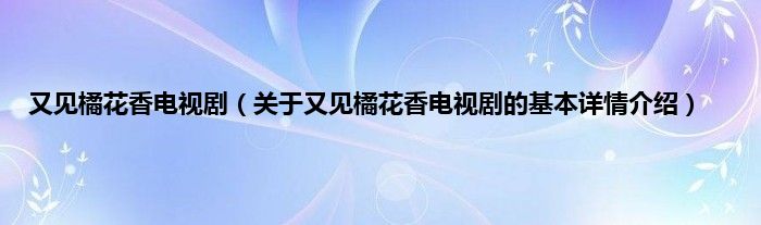 本文关于又见橘花香电视剧的基本详情介绍就讲解完毕,希望对大家有所帮助。