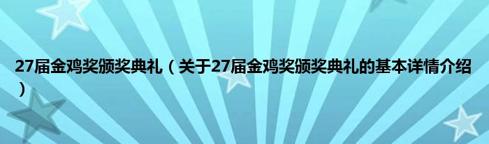 本文关于27届金鸡奖颁奖典礼的基本详情介绍就讲解完毕,希望对大家有所帮助。