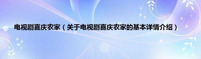 本文关于电视剧喜庆农家的基本详情介绍就讲解完毕,希望对大家有所帮助。