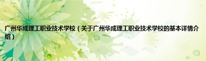 本文关于广州华成理工职业技术学校的基本详情介绍就讲解完毕,希望对大家有所帮助。