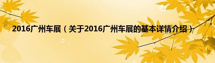 本文关于2016广州车展的基本详情介绍就讲解完毕,希望对大家有所帮助。