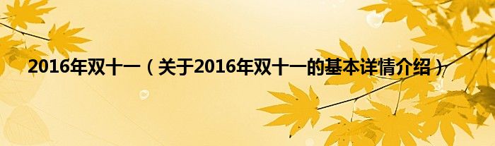 本文关于2016年双十一的基本详情介绍就讲解完毕,希望对大家有所帮助。