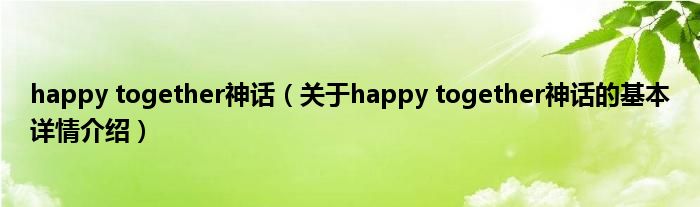 本文关于happy together神话的基本详情介绍就讲解完毕,希望对大家有所帮助。