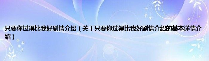 本文关于只要你过得比我好剧情介绍的基本详情介绍就讲解完毕,希望对大家有所帮助。