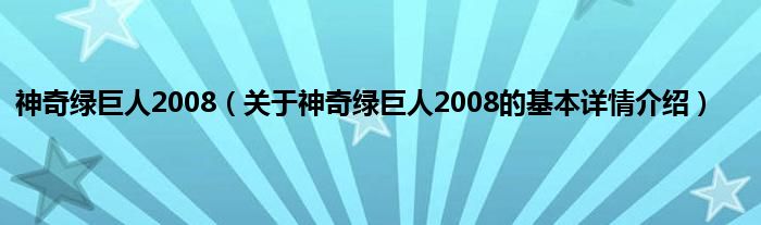 神奇绿巨人2008(关于神奇绿巨人2008的基本详情介绍)