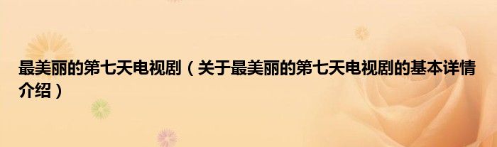本文关于最美丽的第七天电视剧的基本详情介绍就讲解完毕,希望对大家有所帮助。
