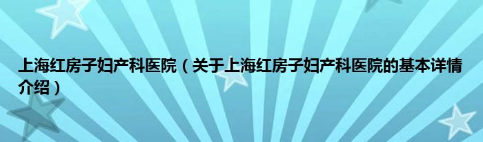 本文关于上海红房子妇产科医院的基本详情介绍就讲解完毕,希望对大家有所帮助。