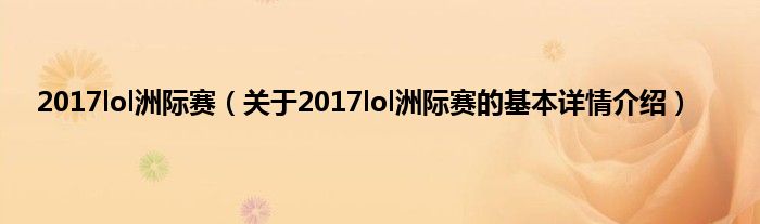2017lol洲际赛(关于2017lol洲际赛的基本详情介绍)
