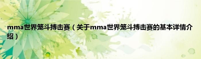 本文关于mma世界笼斗搏击赛的基本详情介绍就讲解完毕,希望对大家有所帮助。