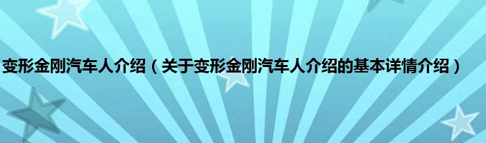 本文关于变形金刚汽车人介绍的基本详情介绍就讲解完毕,希望对大家有所帮助。