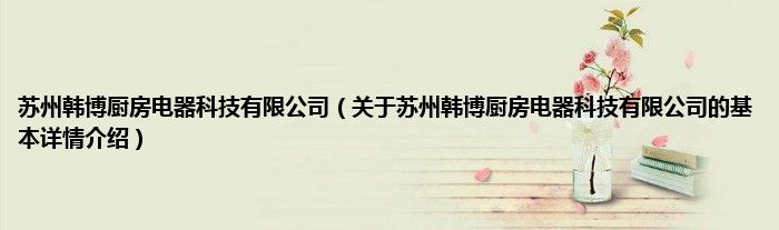 苏州韩博厨房电器科技有限公司(关于苏州韩博厨房电器科技有限公司的基本详情介绍)