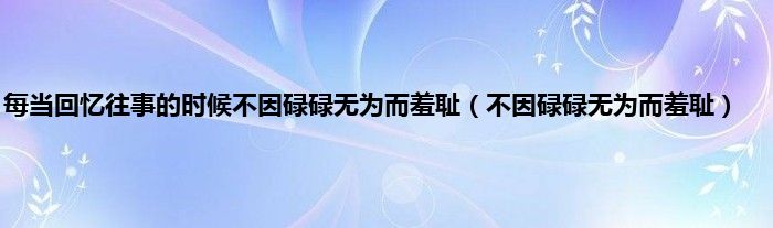 以上就是【每当回忆往事的时候不因碌碌无为而羞耻,不因碌碌无为而羞耻】相关内容。