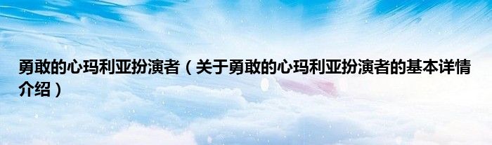 本文关于勇敢的心玛利亚扮演者的基本详情介绍就讲解完毕,希望对大家有所帮助。