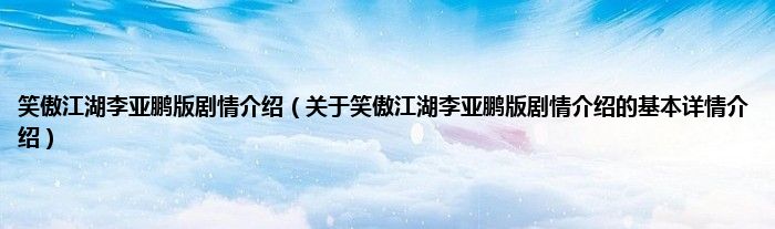 本文关于笑傲江湖李亚鹏版剧情介绍的基本详情介绍就讲解完毕,希望对大家有所帮助。
