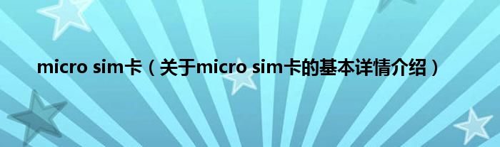 本文关于micro sim卡的基本详情介绍就讲解完毕,希望对大家有所帮助。