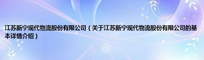 本文关于江苏新宁现代物流股份有限公司的基本详情介绍就讲解完毕,希望对大家有所帮助。