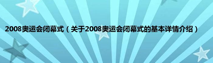 2008奥运会闭幕式(关于2008奥运会闭幕式的基本详情介绍)