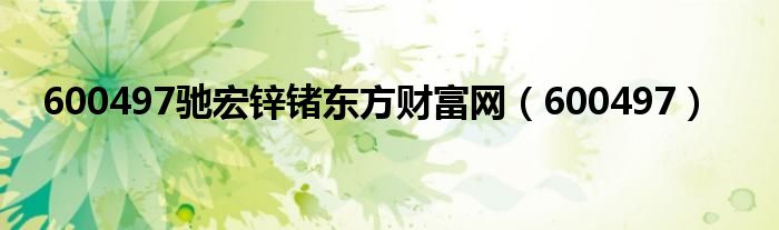 以上就是【600497驰宏锌锗东方财富网,600497】相关内容。