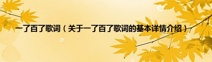 本文关于一了百了歌词的基本详情介绍就讲解完毕,希望对大家有所帮助。