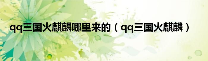 以上就是【qq三国火麒麟哪里来的,qq三国火麒麟】相关内容。