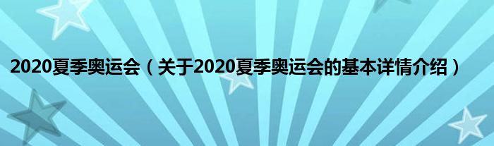 本文关于2020夏季奥运会的基本详情介绍就讲解完毕,希望对大家有所帮助。