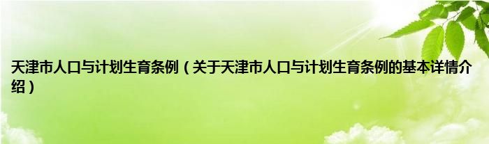 本文关于天津市人口与计划生育条例的基本详情介绍就讲解完毕,希望对大家有所帮助。