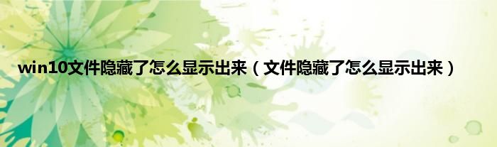 大家好,小问来为大家解答以上问题。win10文件隐藏了怎么显示出来,文件隐藏了怎么显示出来这个很多人还不知道,现在让我们一起来看看吧!