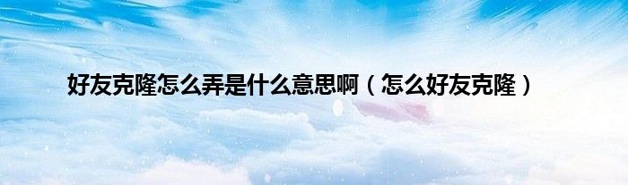 以上就是【好友克隆怎么弄是什么意思啊,怎么好友克隆】相关内容。