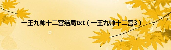 大家好,小问来为大家解答以上问题。一王九帅十二宫结局txt,一王九帅十二宫3这个很多人还不知道,现在让我们一起来看看吧!