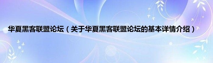本文关于华夏黑客联盟论坛的基本详情介绍就讲解完毕,希望对大家有所帮助。