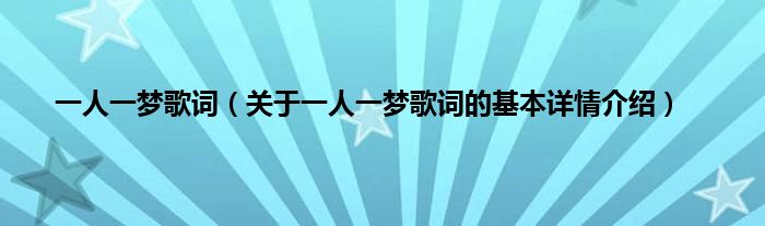 本文关于一人一梦歌词的基本详情介绍就讲解完毕,希望对大家有所帮助。
