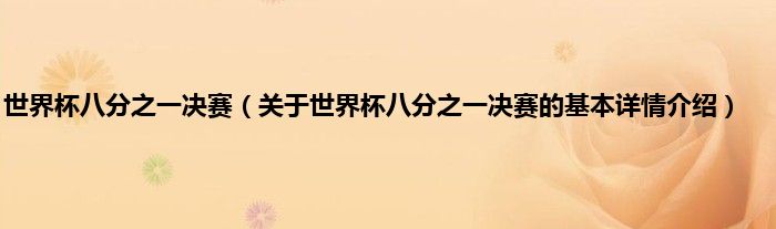 本文关于世界杯八分之一决赛的基本详情介绍就讲解完毕,希望对大家有所帮助。