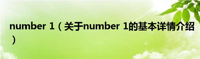 本文关于number 1的基本详情介绍就讲解完毕,希望对大家有所帮助。