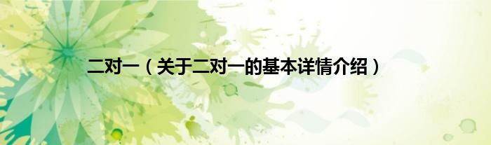 本文关于二对一的基本详情介绍就讲解完毕,希望对大家有所帮助。