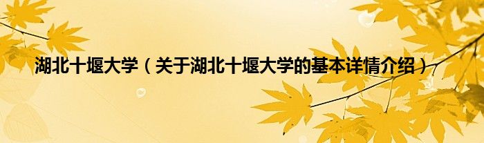 湖北十堰大学(关于湖北十堰大学的基本详情介绍)