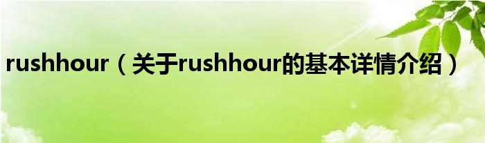 本文关于rushhour的基本详情介绍就讲解完毕,希望对大家有所帮助。