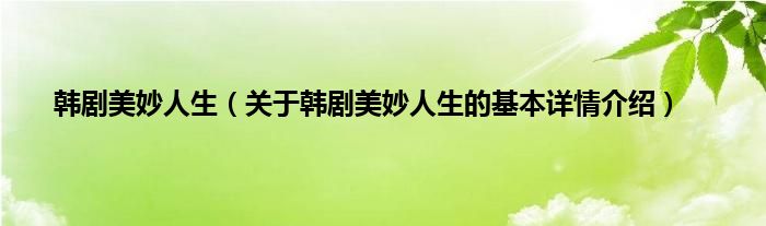 本文关于韩剧美妙人生的基本详情介绍就讲解完毕,希望对大家有所帮助。